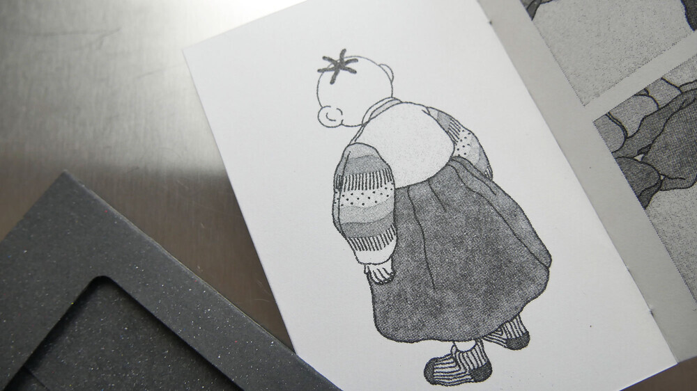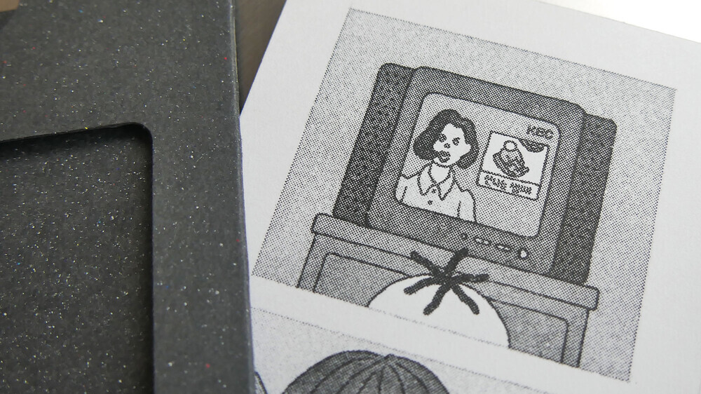 리소프린터를 활용하여 115g/m²평량의 백색 종이에 인쇄했습니다.